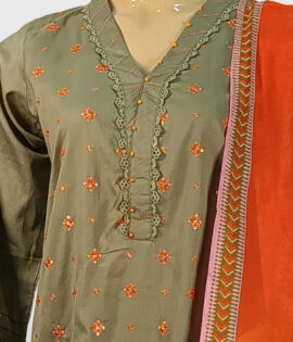 3 PCS Cotton Embroidered Pret with Printed Dupatta ZZGP3P-251025