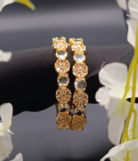 Stone Flower Champagne Indian 1k AD Zircon Full Jarao Bangles (2 Pcs) ZZBFB2P-251206