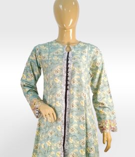 Printed Peplum Front Open Style with Embroidered Sleeves & Daman ZZFP2P-251030