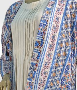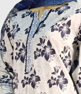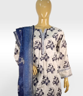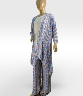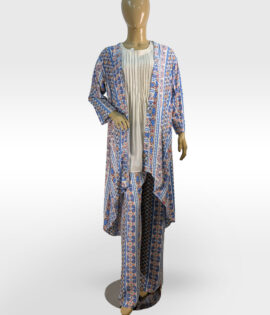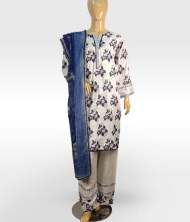3pc Blue & White Printed Suit with Matching Trouser ZZBP3P-251038
