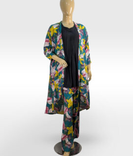 Printed Linen 3-Piece Gown Set (Gown, Inner & Trouser) ZZBEP3P-251020