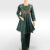 Textured Striped Fabric: Crafted from a premium deep emerald fabric with subtle vertical gold-toned stripes that enhance the outfit’s rich texture.