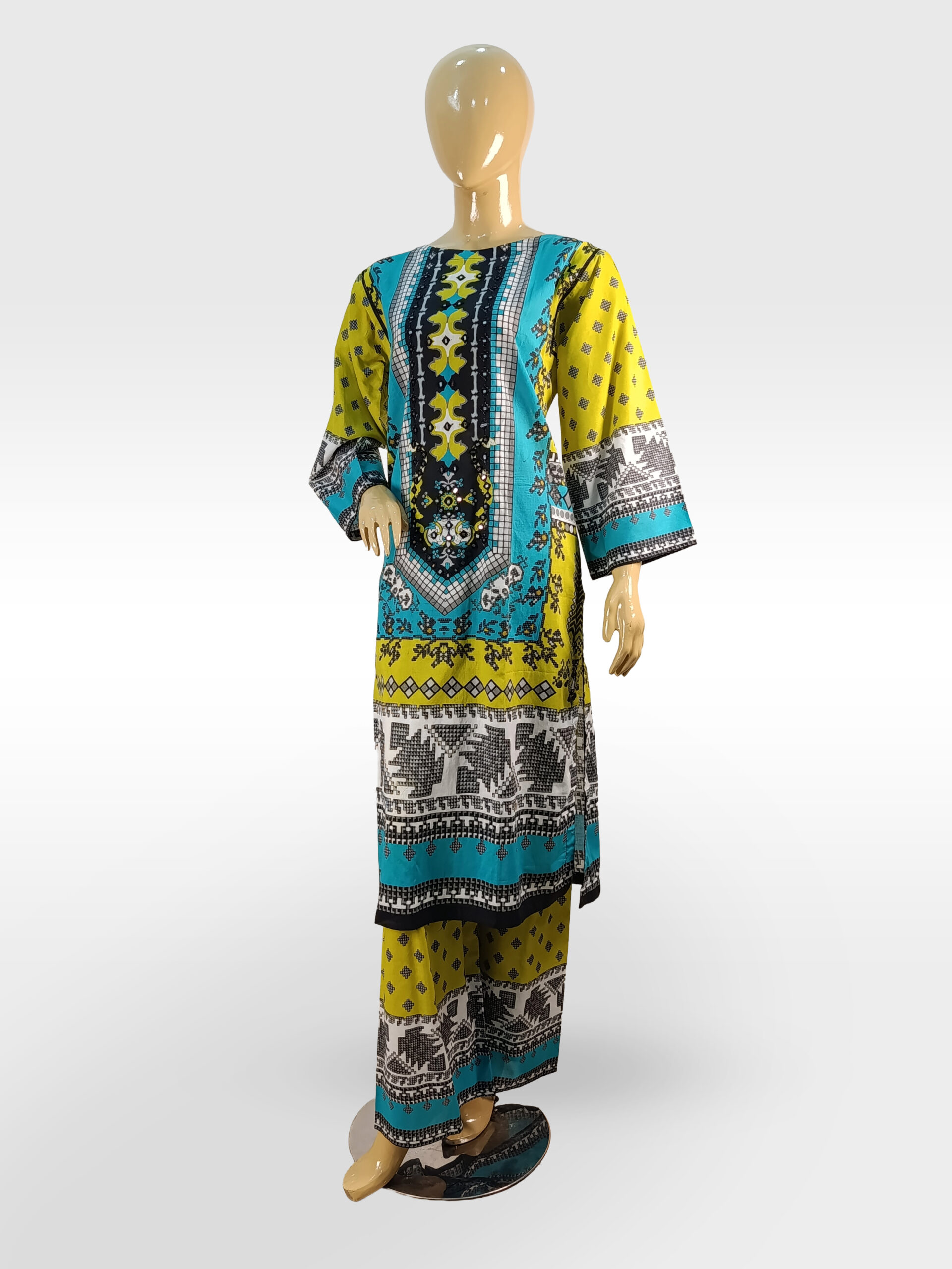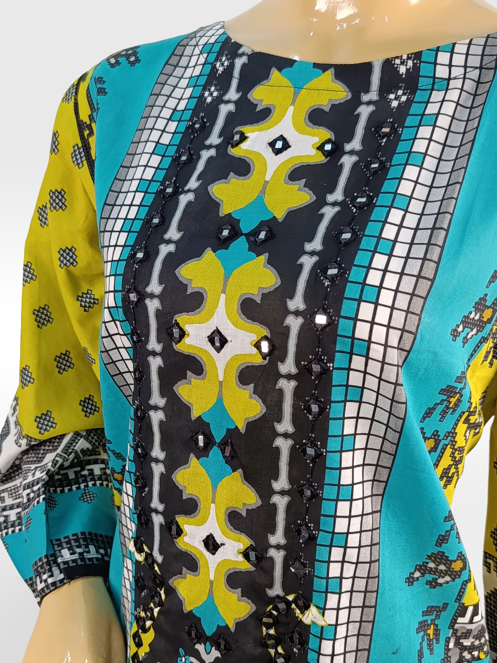 Digital Printed 2-Piece Suit with Mirror Work & Embroidered Neckline ZZGP2P-251029