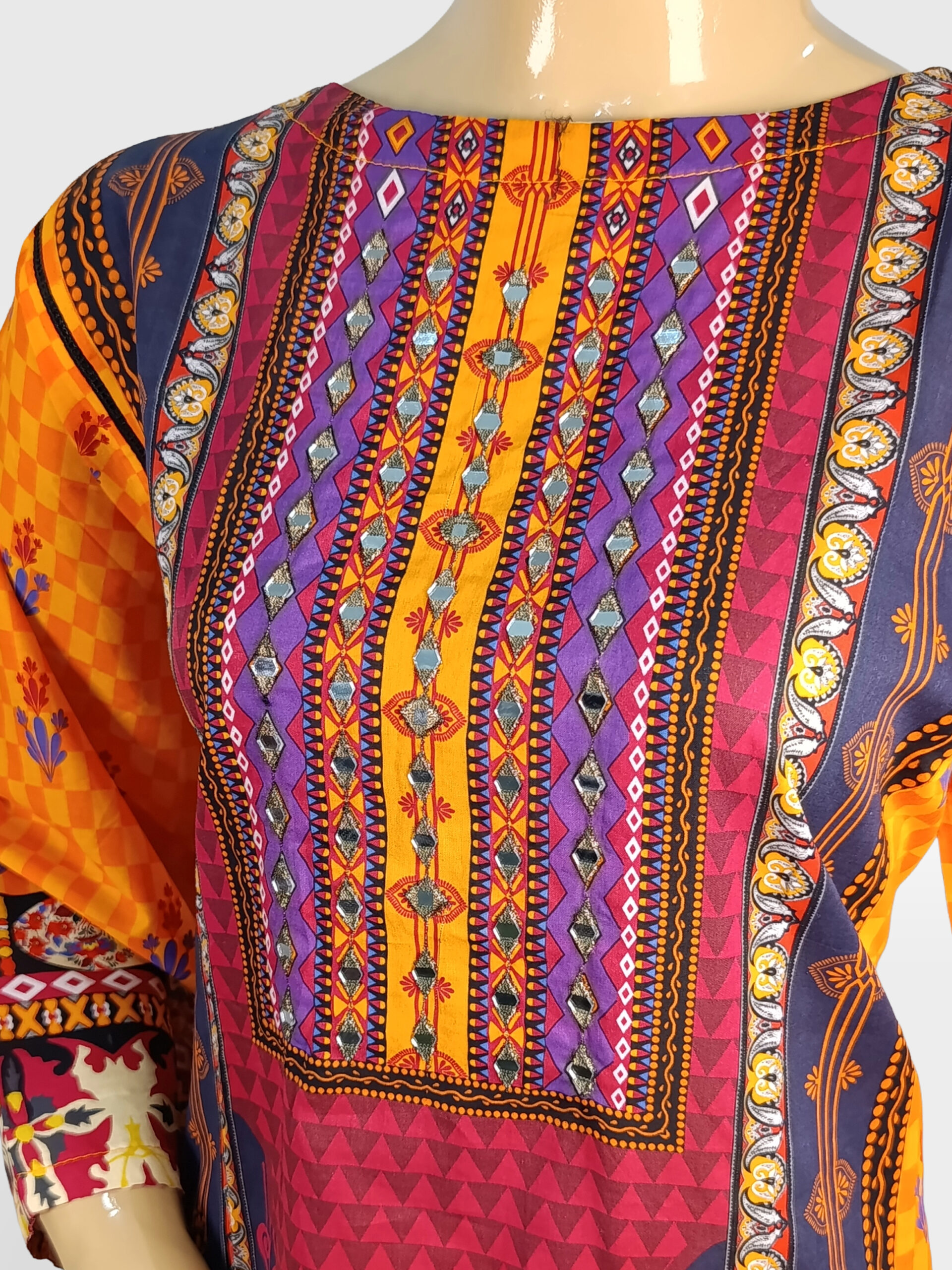Digital Printed 2-Piece Suit with Mirror Work & Embroidered Neckline ZZOP2P-251029