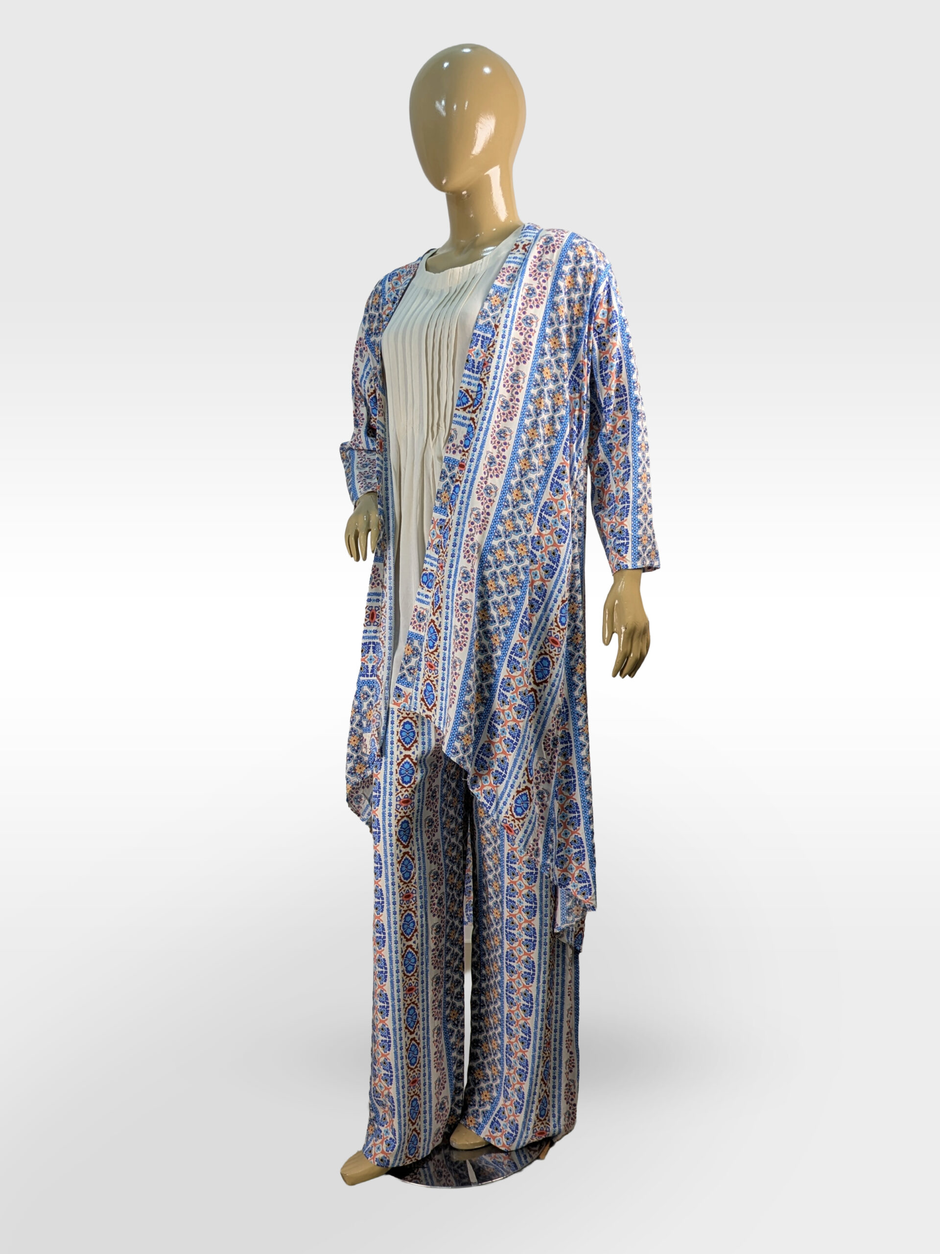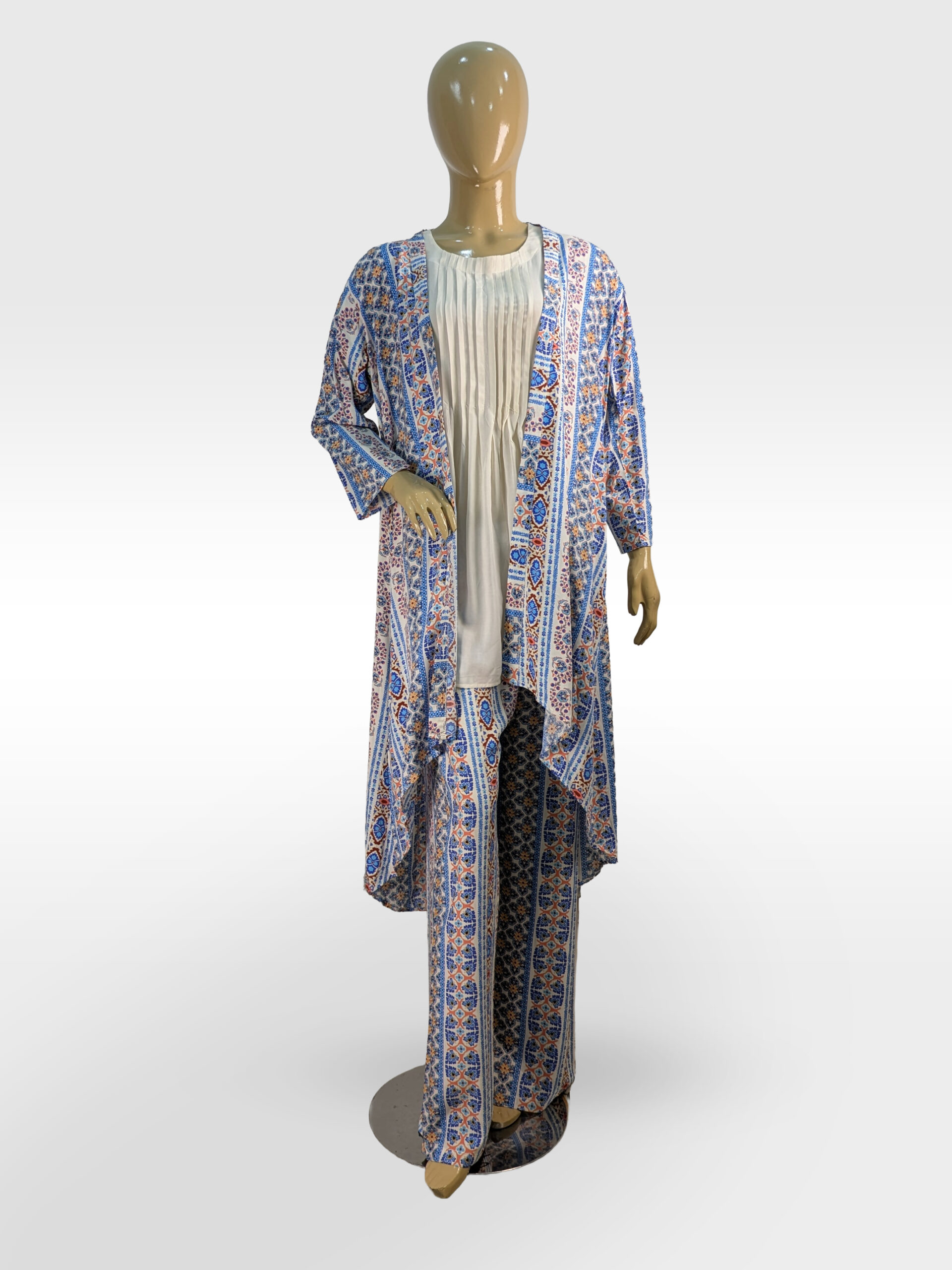 Printed Linen 3-Piece Gown Set (Gown, Inner & Trouser) ZZBEP3P-251020